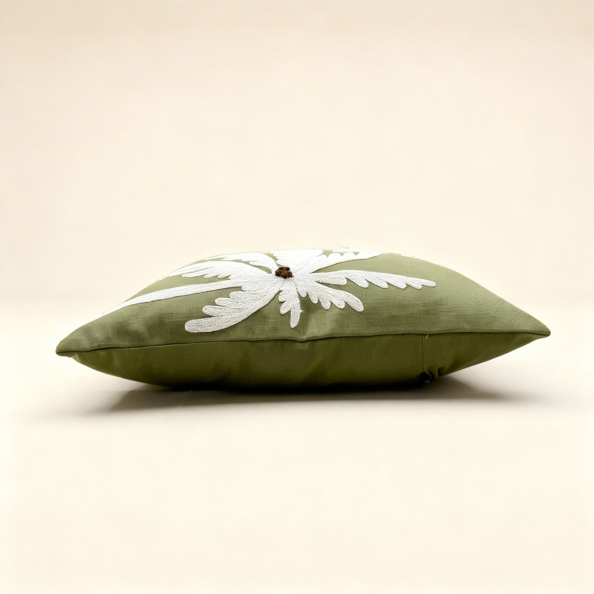 Bring a touch of tropical calm into your home. This handcrafted cushion cover combines lush emerald tones with detailed palm embroidery — instantly refreshing any corner with resort-style serenity.